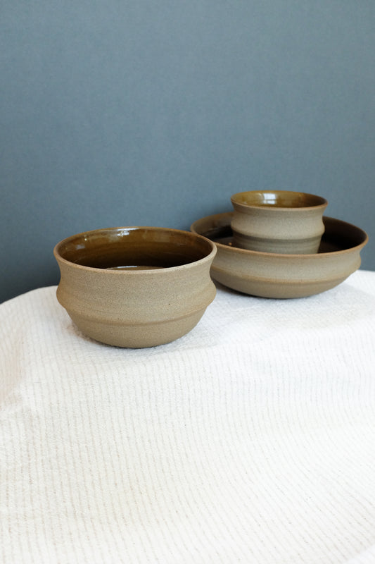 REDUCTION FIRED SET of 2 - DARK GREEN